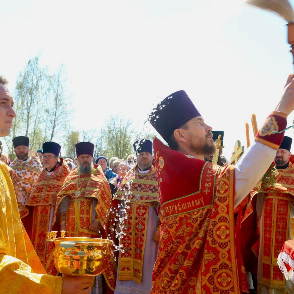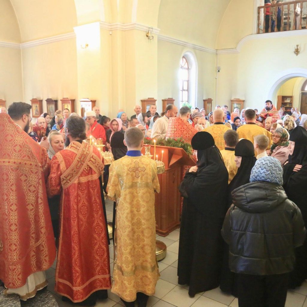 Божественную литургию возглавил епископ Бобруйский и Быховский в сослужении настоятеля храма, секретаря епархиального управления протоиерея Сергия Коровинского и клириков епархии.
