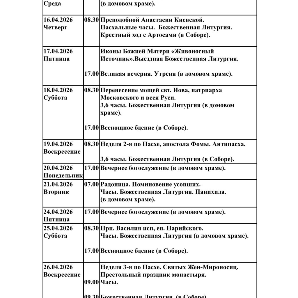 Расписание богослужений от Пасхи до Недели Святых Жен Мироносиц Новости Screenshot Предыдущая запись Бобруйские защитники Отечества посетили нашу обитель в праздник Пасхи Следующая запись Игумения Параскева с сестрами приняла участие в престольном празднике Свято-Иверского храма